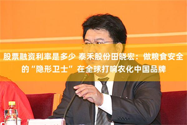 初见泰禾股份董事长田晓宏,以为他是一位文艺范的艺术家。可他一句“我是做农药的”股票融资利率是多少,让记者十分意外,又肃然起敬。